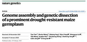 2023年2月21日,中國農(nóng)業(yè)大學(xué)秦峰教授團(tuán)隊(duì)在Nature Genetics在線發(fā)表了題為“Genome assembly and genetic dissection of a prominent drought-resistant maize germplasm” 的研究論文。報(bào)告了玉米抗旱優(yōu)良種質(zhì)基因組CIMBL55組裝和注釋結(jié)果,揭示其優(yōu)良抗旱性的遺傳基礎(chǔ)。中國農(nóng)業(yè)大學(xué)秦峰課題組博士后田甜和博士生王書會(huì)為論文共同第一作者,中國農(nóng)業(yè)大學(xué)秦峰教授為通訊作者。百邁客完成了PacBio、Hi-C測(cè)序及相關(guān)分析工作。