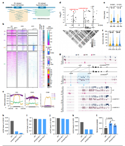 對(duì)B73、Mo17和CIMBL55三個(gè)材料進(jìn)行全基因組亞硫酸氫鹽測(cè)序(BS-seq),準(zhǔn)確評(píng)估其基因組的DNA甲基化狀態(tài)。mCG和mCHG的甲基化水平在全基因組中較高,但在基因邊界處明顯下降。相比之下,包括RNA-TE區(qū)域在內(nèi)的基因組中mCHH水平普遍較低,而DNA-TE元件中mCHH水平較高,表明在這兩種類型的TEs中,CHH甲基化的調(diào)控機(jī)制不同。