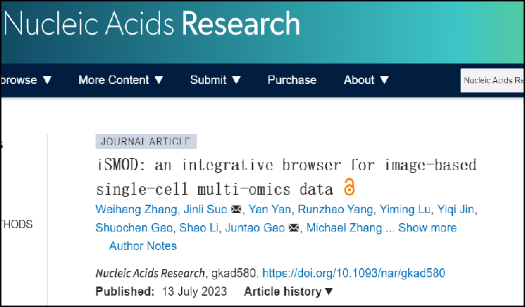 作者開發(fā)了基于圖像的單細胞多組學數(shù)據(jù)庫的綜合瀏覽器——iSMOD。該數(shù)據(jù)庫整合了多個數(shù)據(jù)庫中的物種、基因、蛋白、細胞種類、細胞marker、蛋白探針的信息和原位技術為主的圖像數(shù)據(jù)。并提供了一個用戶友好型的交互式平臺。
