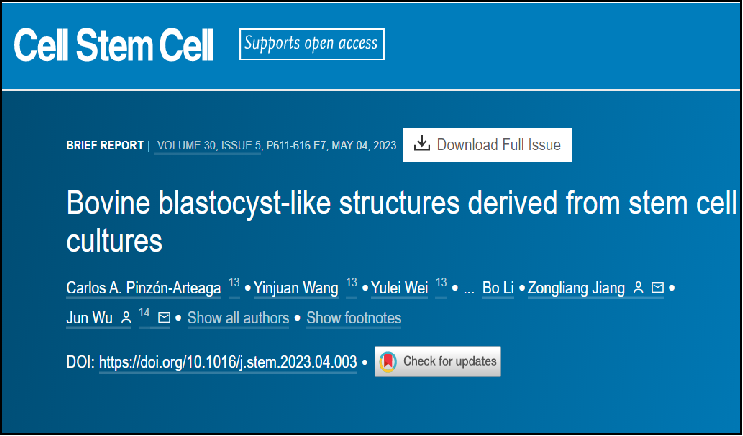 作者利用擴展?jié)撃芨杉?xì)胞和滋養(yǎng)層干細(xì)胞構(gòu)建了牛的類囊胚。模型。體外培養(yǎng)的結(jié)果表明該模型可以引發(fā)母牛對胎兒的發(fā)育識別。單細(xì)胞轉(zhuǎn)錄組的結(jié)果明確了該模型與囊胚的相似性,并利用軌跡分析解析了類囊胚譜系發(fā)育分化的路徑。