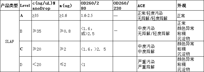 level D:質(zhì)量完全不滿足建庫測序要求,不建議使用的樣品。