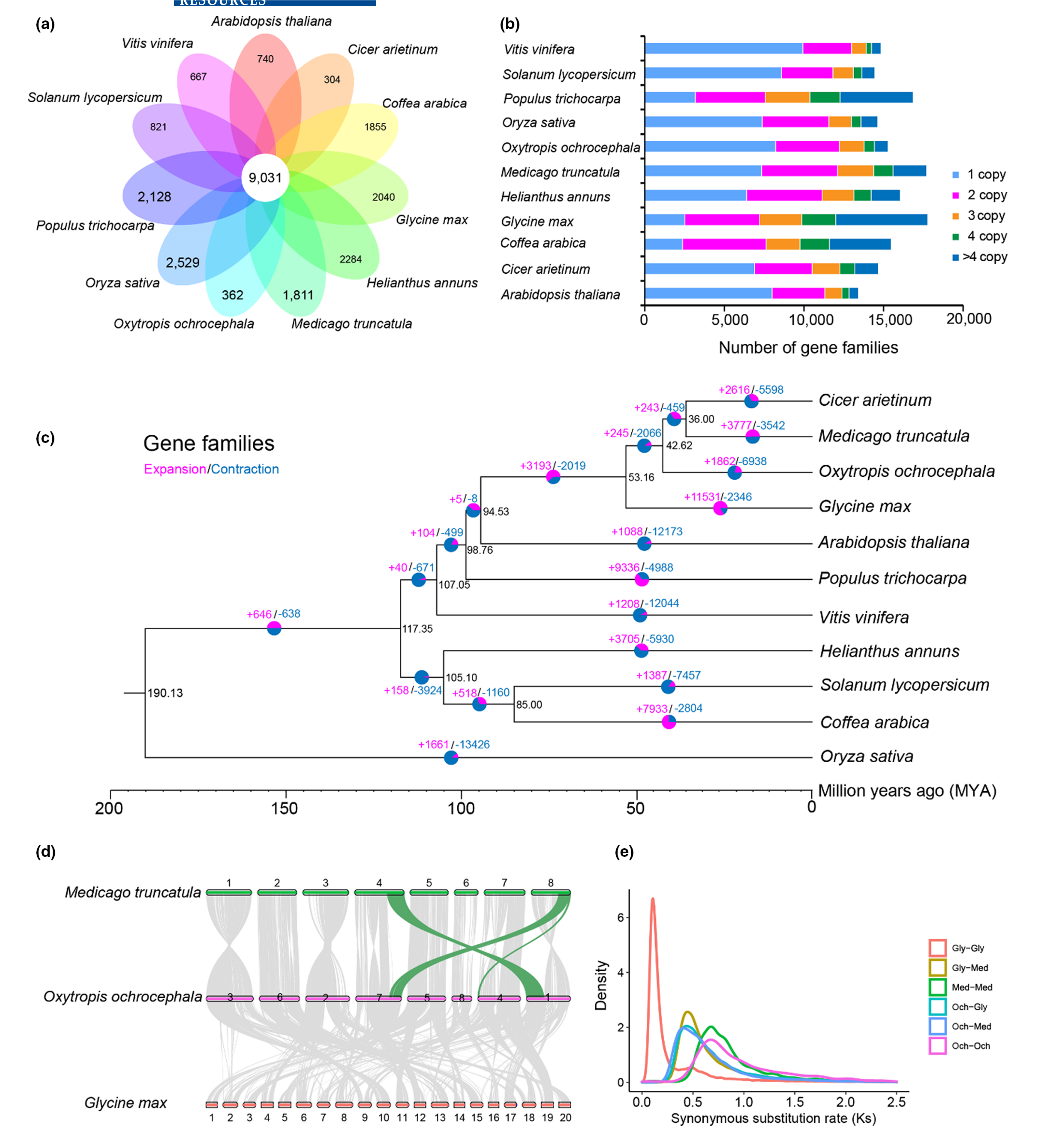 圖1.黃花棘豆與其他10個(gè)物種的比較基因組學(xué)分析