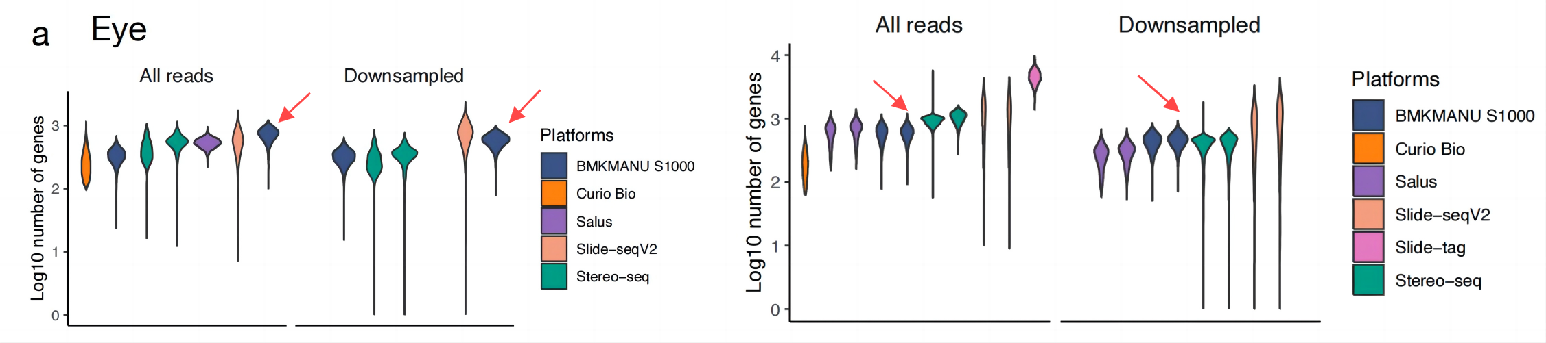 研究結(jié)果表明,上一代BMKMANU S1000在圖像,基因檢出,研究成本控制上表現(xiàn)突出。研究者也同樣認(rèn)為雖然spot直徑是一個相對重要的指標(biāo),但是相比于此,整體基因的捕獲,分析擴(kuò)散的控制更為重要。