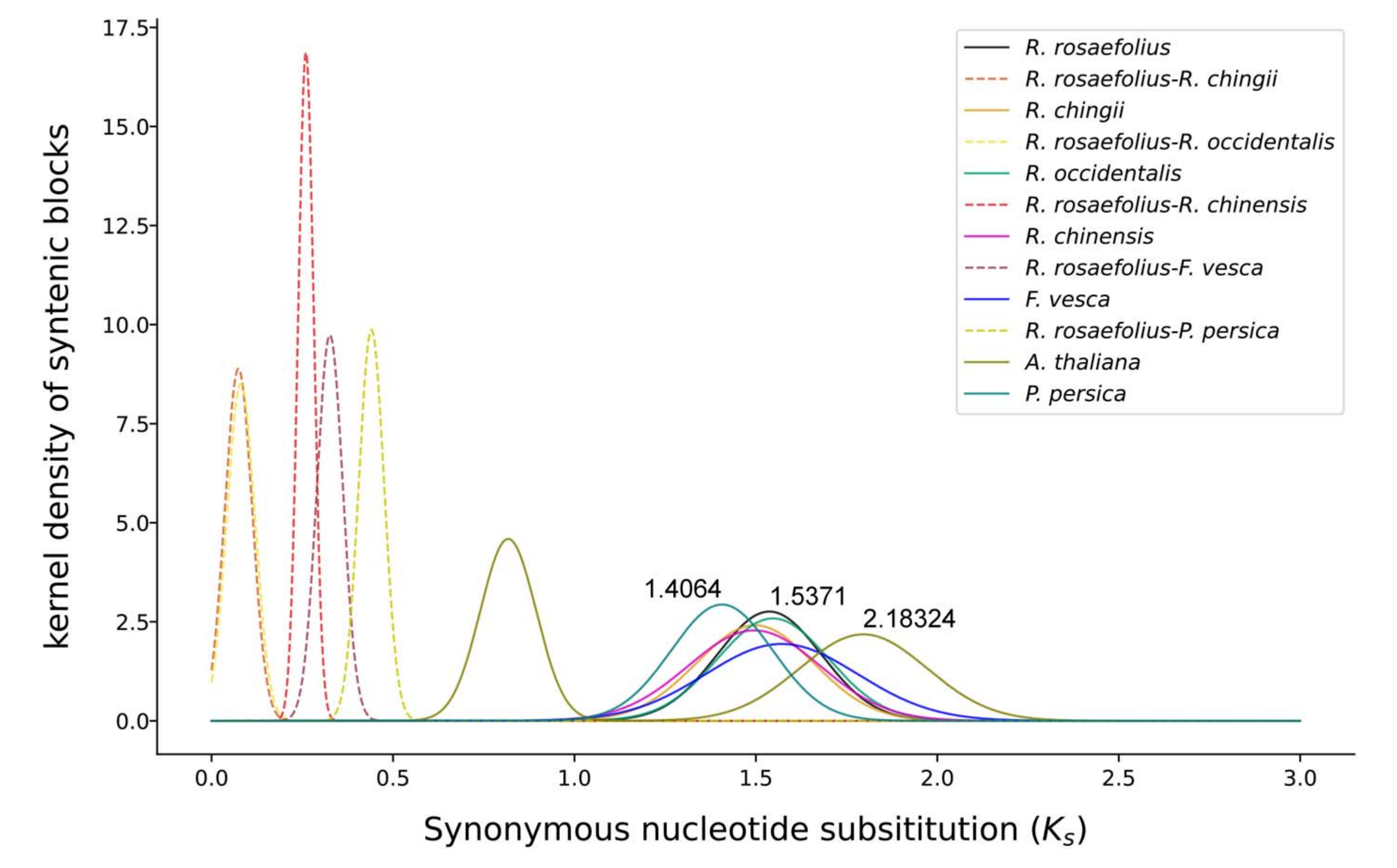 全基因組復(fù)制(WGD)分析發(fā)現(xiàn)。薔薇科其他成員與西方薔薇科同屬的共同祖先曾發(fā)生過WGD事件。