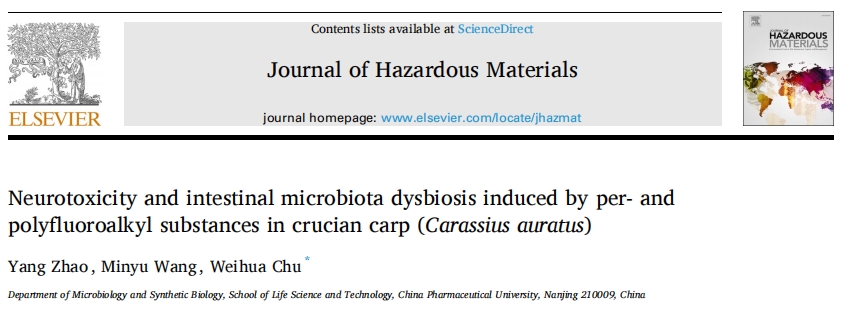 8月22日,中國(guó)藥科大學(xué)儲(chǔ)衛(wèi)華團(tuán)隊(duì)以淡水水生動(dòng)物鯽魚(yú)為模型對(duì)全氟和多氟烷基物質(zhì)(PFAS)的神經(jīng)毒性和菌群紊亂開(kāi)展了深入研究,研究成果以題為“Neurotoxicity and intestinal microbiota dysbiosis induced by per- and polyfluoroalkyl substances in crucian carp (Carassius auratus)”發(fā)表在Journal of Hazardous Materials上。