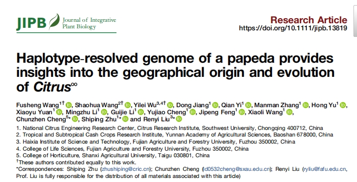近日,西南大學(xué)柑桔研究所聯(lián)合云南省農(nóng)業(yè)科學(xué)院熱帶亞熱帶經(jīng)濟作物研究所、福建農(nóng)林大學(xué)、山西農(nóng)業(yè)大學(xué)等單位在Journal of Integrative Plant Biology發(fā)表題為“Haplotype-resolved genome of a papeda provides insights into the geographical origin and evolution of Citrus”的研究論文,為柑橘物種的起源和進化提供了新的見解。