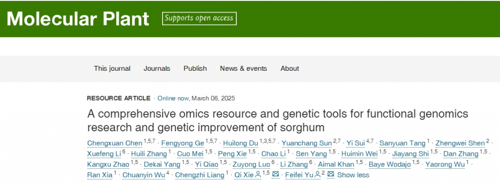 2025年3月7日,中國(guó)科學(xué)院遺傳與發(fā)育生物學(xué)研究所謝旗研究員團(tuán)隊(duì)聯(lián)合中國(guó)農(nóng)業(yè)大學(xué)于菲菲教授團(tuán)隊(duì)在Molecular Plant發(fā)表了研究論文。題為“A comprehensive omics resource and genetic tools for functional genomics research and genetic improvement of sorghum”。該研究基于高粱自交系E048,構(gòu)建了一個(gè)涵蓋“基因組-表達(dá)譜-突變庫-轉(zhuǎn)化體系”四位一體的綜合性研究資源平臺(tái),整合了端粒到端粒(T2T)基因組、多組織基因表達(dá)圖譜、飽和EMS突變體庫以及農(nóng)桿菌介導(dǎo)的遺傳轉(zhuǎn)化體系,為高粱功能基因組學(xué)研究與遺傳改良育種提供了系統(tǒng)化的工具和數(shù)據(jù)支持。
