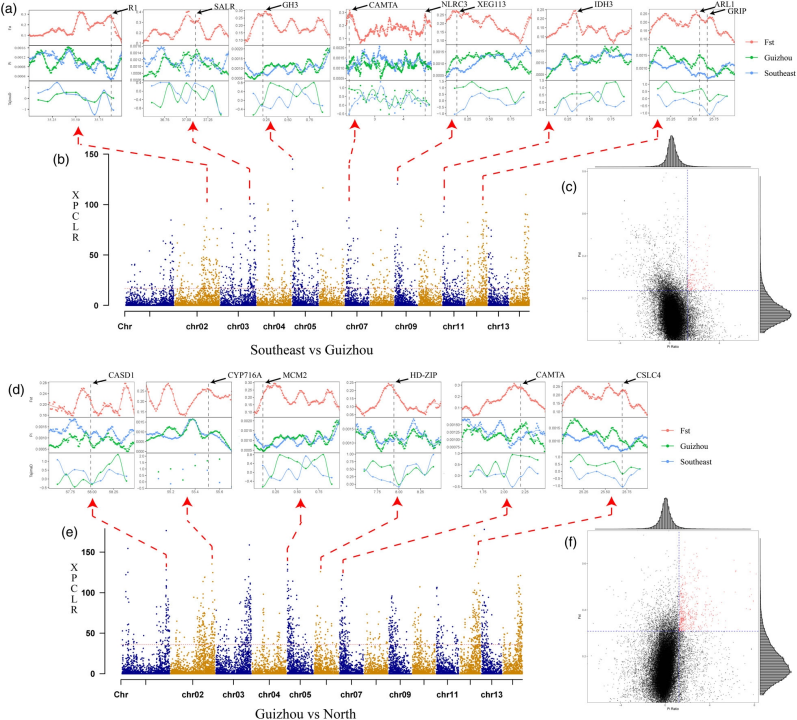 揭示關(guān)鍵適應(yīng)性基因:在貴州和華北群體中,研究檢測到與干旱、寒冷和病害抗性相關(guān)的選擇信號基因(如CYP716A, CAMTA,HD-ZIP等),解釋了不同地區(qū)無患子群體的環(huán)境適應(yīng)能力差異。