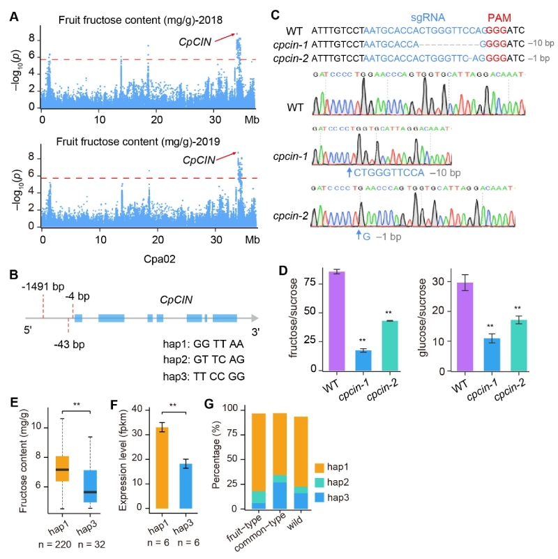 圖2.?CpCIN啟動子變異調(diào)控番木瓜果實果糖含量