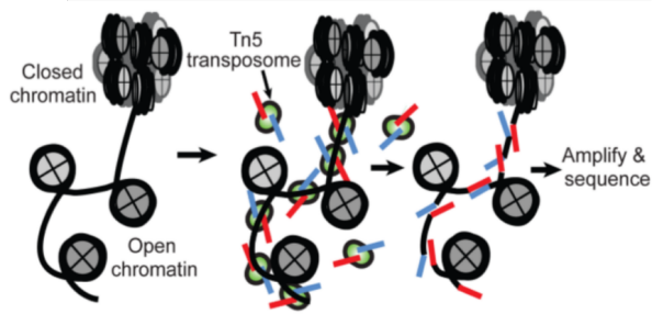 Chip-seq是研究特定轉(zhuǎn)錄因子或者蛋白結(jié)合的區(qū)域,需要用抗體去免疫共沉淀相應的區(qū)域。而ATAC-seq無需抗體,可將所有轉(zhuǎn)錄因子或者蛋白可能結(jié)合的區(qū)域用Tn5轉(zhuǎn)座酶切割下來進行測序。