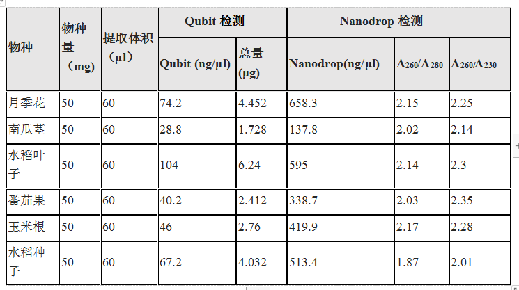 如成熟水稻種子、棉花葉片、龍眼花、擬南芥種子、百合、獼猴桃、月季花,煙草、香蕉等植物組織。
