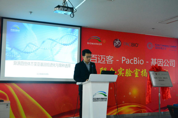 ? 揭牌儀式上,百邁客CEO鄭洪坤在致辭中表示:“百邁客-PacBio-基因公司共建聯(lián)合實(shí)驗(yàn)室揭牌儀式標(biāo)志著三方在共建實(shí)驗(yàn)室合作方面邁出了實(shí)質(zhì)性的一 步,它證實(shí)了創(chuàng)新思路才能帶來可喜改變的信念。近幾年來,中國(guó)的基因測(cè)序服務(wù)市場(chǎng)已經(jīng)在產(chǎn)業(yè)化和市場(chǎng)化方面取得了長(zhǎng)足發(fā)展,好的市場(chǎng)離不開好的產(chǎn)業(yè)鏈條, 建立良性的產(chǎn)業(yè)鏈條需要基因測(cè)序行業(yè)上、中、下游企業(yè)的積極參與,企業(yè)之間強(qiáng)強(qiáng)聯(lián)合、建立良好的合作和互信,才能共同承擔(dān)市場(chǎng)風(fēng)險(xiǎn),才能實(shí)現(xiàn)真正的合作共 贏。這有利于整個(gè)行業(yè)生態(tài)圈的發(fā)展,有利于更好的履行企業(yè)的社會(huì)責(zé)任。百邁客始終立足自身,不斷創(chuàng)新,推出新的產(chǎn)品和服 務(wù),提高客戶體驗(yàn)。同時(shí),我們積極尋求外部合作,推動(dòng)企業(yè)發(fā)展,目前已經(jīng)和眾多的跨國(guó)企業(yè),如illumina,Thermo,Sigma,PE等建立了 良好的合作關(guān)系,有效的助推了公司的快速發(fā)展。我們希望借助實(shí)驗(yàn)室強(qiáng)強(qiáng)聯(lián)合,把技術(shù)的優(yōu)勢(shì)、數(shù)據(jù)分析的優(yōu)勢(shì)、渠道推廣的優(yōu)勢(shì)更好的整合起來,讓更多的人受 益于三代測(cè)序,更好的為這個(gè)行業(yè)貢獻(xiàn)力量”。