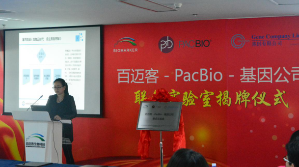 12 月27日,北京百邁客生物科技有限公司與PacBio、基因有限公司舉行了聯(lián)合實(shí)驗(yàn)室揭牌儀式。北京百邁客生物科技有限公司創(chuàng)始人、董事長(zhǎng)兼CEO鄭洪坤 先生,PacBio公司 Senior Director of Sales -North Asia(北亞區(qū)高級(jí)銷售總監(jiān))牟德宜女士;基因有限公司儀器事業(yè)部總經(jīng)理項(xiàng)連才先生等多位三方代表參加了揭牌儀式。轉(zhuǎn)化醫(yī)學(xué)、生物谷、測(cè)序中國(guó)作為特邀 媒體參加了本次揭牌儀式。