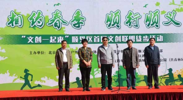 2016年4月8日,由北京順義區(qū)宣傳部攜手體育部聯(lián)合指導舉辦的“文創(chuàng)一起來”順義區(qū)首屆文創(chuàng)聯(lián)盟徒步活動,在新城濱河森林公元隆重召開。