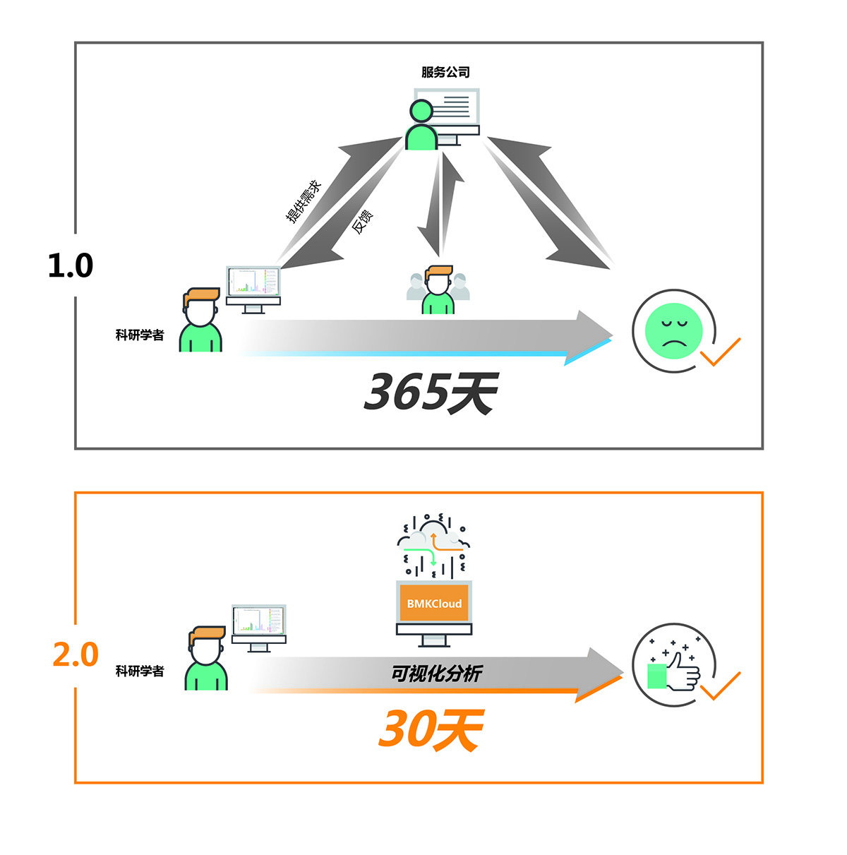 “百邁客云”使以上問題得到破解。百邁客8年的科技服務經(jīng)驗中提煉出的客戶需求,數(shù)以萬計的項目分析經(jīng)驗保證了分析的準確性,生物信息人才和計算機人才團隊的超融合,多年生物信息培訓班等知識傳播經(jīng)驗為百邁客云平臺的開發(fā)和應用提供了有力的保障。從而使云平臺能夠更好的滿足客戶數(shù)據(jù)深入挖掘的需求,能夠在科研工作者中廣泛推廣和輕松使用。這種模式讓我們的研究人員有更多的精力去把握科學技術前沿發(fā)展,設計科研的思路,不用擔心生物信息和IT的技術問題,真正實現(xiàn)了我們一直以來希望的客戶通過云平臺自己做分析,相比科技服務1.0模式是一個顛覆性的變革,“授人以魚不如授人以漁”,這種可以讓生物學家在云端對自有數(shù)據(jù)結合PB級公共數(shù)據(jù)自主進行可視化、交互式基因大數(shù)據(jù)挖掘的科技服務模式我把它定義為“科技服務 2.0 時代”。