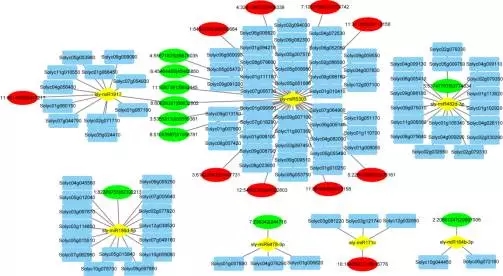 為了進一步揭示circRNA在果實成熟中的作用,我們對circRNA靶向的miRNA以及miRNA的靶標mRNA進行了預測。結果發(fā)現(xiàn)其中20個circRNA上含有7個miRNA結合位點,同時鑒定出94個miRNA的靶標mRNA。通過對鑒定到的94個靶標mRNA進行GO富集和KEGG分析,總結出circRNA可能通過調節(jié)代謝過程、激素平衡以及光合相關的通路來調控番茄果實成熟。此外,circRNA還可能通過參與轉錄調控,主要是通過調節(jié)包括ERF、SBP、MYB等果實成熟相關的轉錄因子,來調節(jié)番茄果實的成熟。