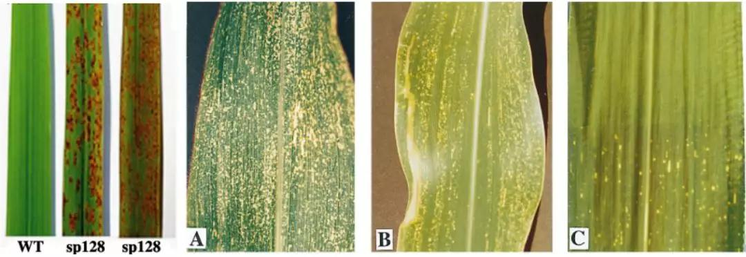 植物類病變(lesion mimic, LM)又稱類病斑,是指在沒有受到任何病原菌侵染的條件下,植物自發(fā)產(chǎn)生壞死斑點。這種局部細(xì)胞的壞死屬于細(xì)胞程序化死亡(PCD),細(xì)胞程序化死亡在植物生長發(fā)育過程中廣泛存在,特別是受到生物或非生物脅迫,當(dāng)受到不相容的病原菌感染時,植物可以在受感染的部位啟動某種形式的PCD,以限制病原體的傳播,這是一種先天性的免疫反應(yīng),稱為超敏反應(yīng)(HR)。HR是植物細(xì)胞為限制病原菌生長而快速死亡的一種方式,其誘導(dǎo)的細(xì)胞死亡可以激發(fā)鄰近組織的防衛(wèi)反應(yīng)(defense response)和植株的系統(tǒng)獲得性抗性(systemic acquired resistance,SAR)。