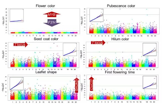 Fig2:重要農(nóng)藝性狀的群基因組關(guān)聯(lián)分析圖