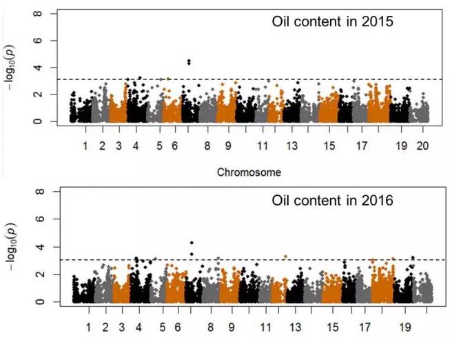 5.英文題目:Genome-wide association mapping for seed protein and oil contents using a large panel of soybean accessions