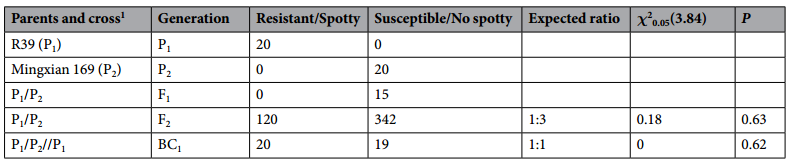 親本:銘賢169(Mingxian 169)×R39,銘賢169為感病栽培種;R39為抗性品種,是鄭麥9023(zhengmai 9023)突變體材料自交8代所形成