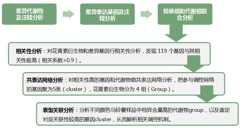 上期小編和大家分享了百邁客成功案例-轉(zhuǎn)錄組和代謝組解析風(fēng)信花色變化分子機(jī)制,大家可以發(fā)現(xiàn),其中,代謝組并沒有走普通轉(zhuǎn)錄組項(xiàng)目的套路(基于測序結(jié)果,采用生物信息的手段,挖掘決定表型關(guān)鍵基因),而是采用靶向檢測幾種代謝物的方法,從代謝組角度進(jìn)一步驗(yàn)證兩種花色風(fēng)信子花青素合成通路相關(guān)的基因。那么,隨著代謝組的不斷發(fā)展,目前經(jīng)典代謝組分析方法,更多的是傾向于基于代謝物檢測結(jié)果,通過生物信息分析的手段,深入挖掘與表型相關(guān)的關(guān)鍵代謝物,進(jìn)而輔助轉(zhuǎn)錄組挖掘決定表型的關(guān)鍵基因。今天,我們通過一篇經(jīng)典案例,來一探轉(zhuǎn)錄組和代謝組聯(lián)合分析的套路。