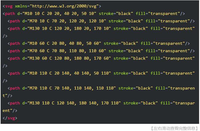 【需要注意】,T命令前面必須是一個(gè)Q命令,或者是另一個(gè)T命令,才能達(dá)到這種效果。如果T單獨(dú)使用,那么控制點(diǎn)就會(huì)被認(rèn)為和終點(diǎn)是同一個(gè)點(diǎn),所以畫出來(lái)的將是一條直線。