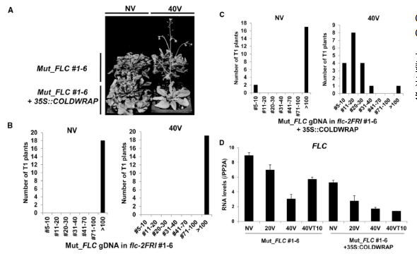 比如這篇發(fā)表在Developmental Cell的章中對lncRNA COLDWRAP的RNAi敲除品系表現(xiàn)出減少的春化反應,將COLDWRAP轉入COLDWRAP突變體后,COLDWRAP表達恢復了春化反應。