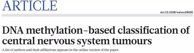 2018年3月14號(hào),德國(guó)海德堡大學(xué)醫(yī)院神經(jīng)病理學(xué)系等機(jī)構(gòu)的專家,在Nature雜志上提出了一個(gè)全面的基于DNA甲基化對(duì)中樞神經(jīng)系統(tǒng)腫瘤分類方法。他們發(fā)現(xiàn)相比于常規(guī)方法,顯著提高了準(zhǔn)確性,修正了12%病例的初始組織病理學(xué)診斷結(jié)果。