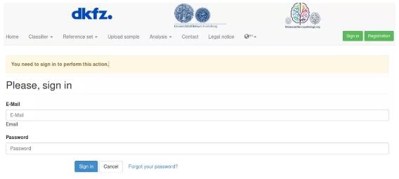 該網(wǎng)站可用于大多數(shù)中樞神經(jīng)系統(tǒng)腫瘤基于DNA甲基化進(jìn)行分子分型。首先生成并上傳您感興趣的腫瘤450K甲基化芯片或者EPIC芯片未經(jīng)處理的IDAT文件,隨后將自動(dòng)與2800多種神經(jīng)病理學(xué)腫瘤甲基化數(shù)據(jù)(目前包括80多種腫瘤類型或亞型)進(jìn)行比較。幾分鐘內(nèi),即可通過(guò)email收到您所提供的病例的甲基化圖譜報(bào)告、根據(jù)芯片數(shù)據(jù)計(jì)算的低分辨率拷貝數(shù)CNV圖以及預(yù)估的MGMT啟動(dòng)子甲基化狀態(tài)。