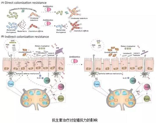 抗生素治療帶來不良影響的原因多種多樣。首先,它可能破壞微生物之間以及微生物與宿主之間的相互作用,而這些互作是維持人體生態(tài)體系內(nèi)穩(wěn)態(tài)的關(guān)鍵。其次,它還可能促進(jìn)抗生素耐藥菌的增長,及導(dǎo)致其它敏感型細(xì)菌獲得抗生素耐藥性。這些機(jī)制可能導(dǎo)致微生物菌群組成的不可逆改變。最后,因抗生素使用過度減少了共生細(xì)菌對免疫系統(tǒng)的刺激,可能會破壞免疫系統(tǒng)的適當(dāng)“education”,從而產(chǎn)生對自身或無害抗原的免疫反應(yīng),即發(fā)生自身免疫反應(yīng)或過敏反應(yīng)。
