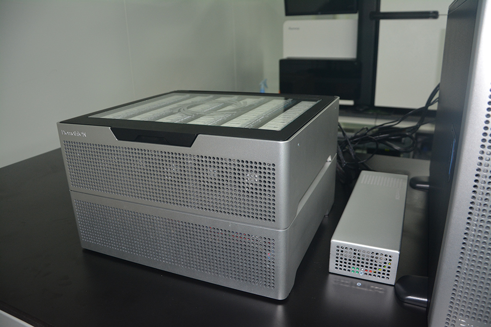 ????????2018年8月7日,Oxford Nanopore產(chǎn)品中的PromethION平臺已抵達(dá)北京百邁客測序?qū)嶒?yàn)室。截止目前,百邁客已經(jīng)擁有Oxford Nanopore的MinION、GridION X5和PromethION全套Nanopore測序儀,投資金額超過3000萬人民幣。PromethION作為Oxford Nanopore產(chǎn)品中的平臺,在設(shè)計(jì)不僅具備了實(shí)時、長讀長、直接測序等特點(diǎn),在產(chǎn)量上還可能與市場上傳統(tǒng)測序儀相匹敵。在2018年初,Oxford Nanopore官方宣布單張PromethION測序芯片的數(shù)據(jù)產(chǎn)出超過150 Gb。而實(shí)際上,使用臨床樣本、植物樣本以及測試樣本的用戶也能夠獲得單張芯片100 Gb 的產(chǎn)出。作為Oxford Nanopore的重要合作伙伴,百邁客將基于PromethION/GridION平臺為客戶提供商業(yè)測序服務(wù)。