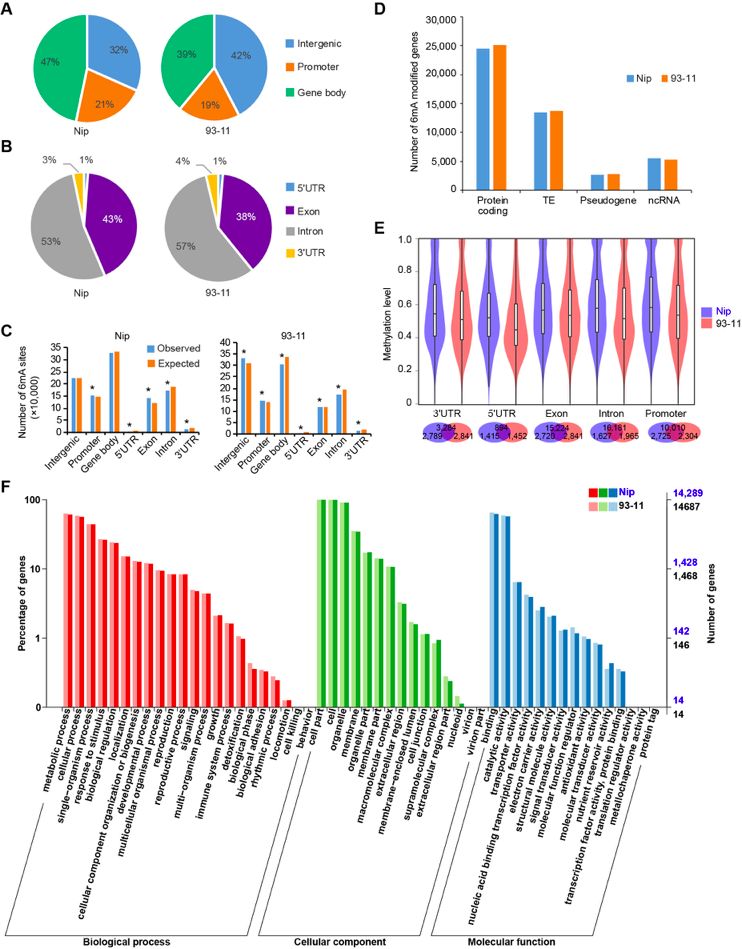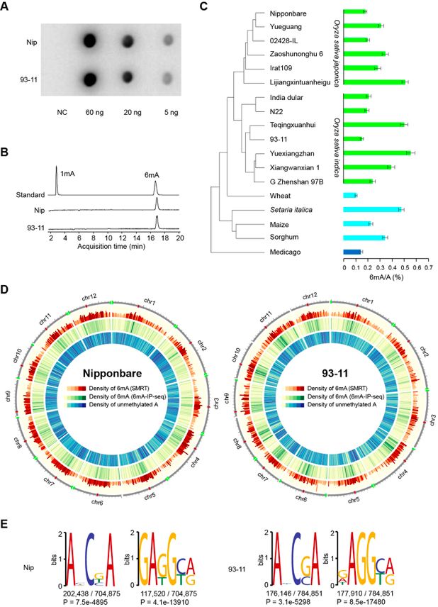 圖5. 水稻Nip、93-11和擬南芥6mA甲基體的比較
