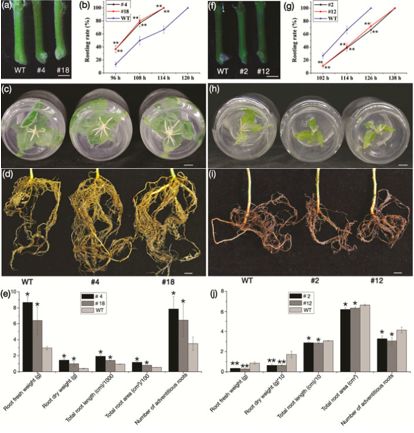 圖2、過表達(dá)、干擾和野生型植株不定根生成比較