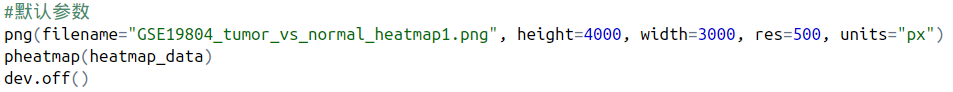 我們修改了字體大小,不顯示樣本名,以及設置圖片標題,到此時,經(jīng)過一系列參數(shù)更改,是不是已經(jīng)比一開始使用默認參數(shù)好看多了呢?(可以增加一個對比圖,GSE19804_tumor_vs_normal_heatmap6.png與GSE19804_tumor_vs_normal_heatmap1.png的 對比)。