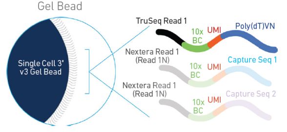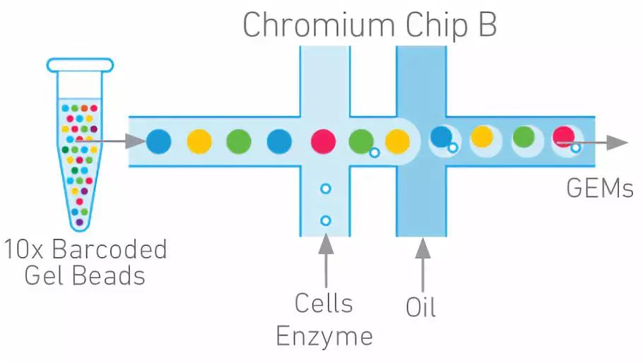 ChromiumTM Single Cell 3′ Solution是基于10 X Genomics平臺(tái),能夠一次性分離、并標(biāo)記500–10000個(gè)單細(xì)胞,并能在單細(xì)胞水平進(jìn)行檢測(cè)的技術(shù),其通過(guò)微流控系統(tǒng),將單細(xì)胞或長(zhǎng)片段DNA分子快速分配到油包水的微反應(yīng)體系中,每個(gè)微反應(yīng)體系中的單DNA分子會(huì)獲得唯一的特異性分子標(biāo)簽,制備生成的測(cè)序文庫(kù)可以在illumina平臺(tái)進(jìn)行測(cè)序,并由10x Genomics提供數(shù)據(jù)分析及可視化軟件,測(cè)序?qū)嶒?yàn)及分析流程可以和illumina系統(tǒng)無(wú)縫銜接。該平臺(tái)廣泛應(yīng)用于3’單細(xì)胞轉(zhuǎn)錄組測(cè)序、基因組組裝應(yīng)用、免疫組庫(kù)測(cè)序、ATAC-seq、人全基因組及全外顯子組測(cè)序。