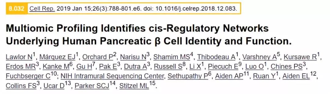 Lawlor N,Márquez EJ,et al. Multiomic Profiling Identifies cis-Regulatory Networks Underlying Human Pancreatic β Cell Identity and Function.Cell Rep,2019,26(3):788-801.