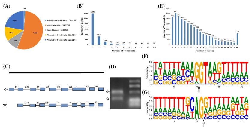 圖4.茶樹轉錄本及可變剪接特征分析
