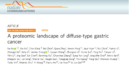 胃癌(GC)在全球腫瘤死亡原因中排名第三,我國是胃癌發(fā)病和死亡的重災(zāi)區(qū)。Lauren分型從形態(tài)學(xué)上將GC分為三種類型:彌散型,腸型和混合型,彌漫型胃癌(DGC)占GC的約30%,預(yù)后最差,且缺少有效的靶向治療手段。盡管國際上發(fā)表過基于基因組和轉(zhuǎn)錄組的胃癌分子分型,但均沒有與臨床預(yù)后實現(xiàn)有效的關(guān)聯(lián)性。本文對胃癌組織及其附近組織進(jìn)行蛋白質(zhì)組學(xué)研究,是DGC的蛋白質(zhì)組學(xué)分析,研究成果發(fā)表在Nature Communications雜志上。