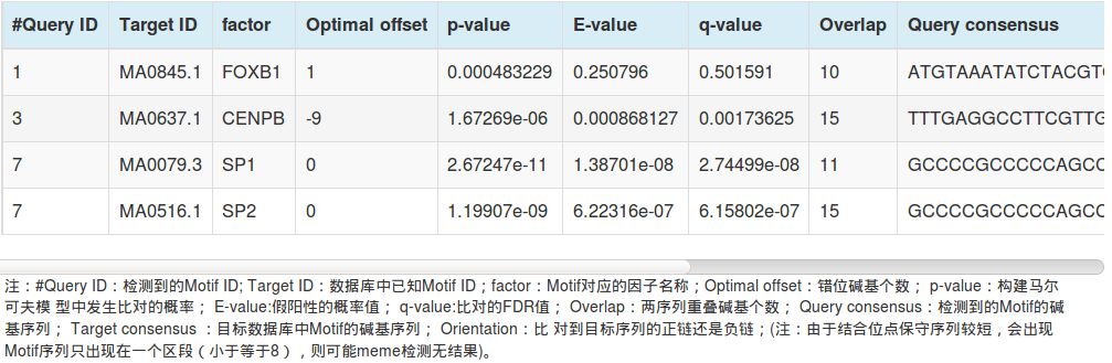 我們根據實際需求,從MEME-ChIP的原始分析結果中提取了精華,提供了較為全面完整的分析結果: