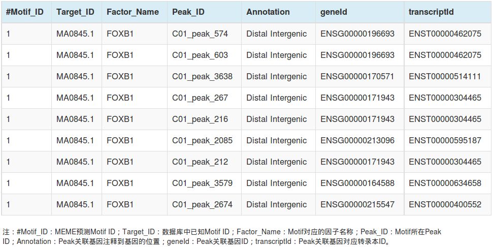 3、MEME注釋結果與Peak靶基因的聯合結果