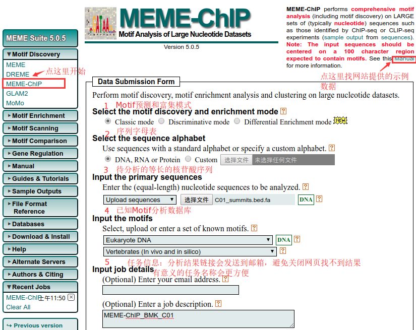 1、使用MEME-ChIP的時候務必保證輸入序列是等長的。