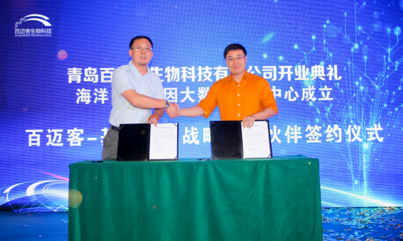 為了便于更好的服務海洋科研事業(yè)及科研人員對大數(shù)據(jù)應用的科研新需求,百邁客生物入駐青島,并建立了“海洋生物基因大數(shù)據(jù)研究中心”。北京百邁客生物科技有限公司營銷中心總監(jiān)宋軍女士、中國海洋大學食品科學與工程學院院長薛長湖老師為中心揭牌。