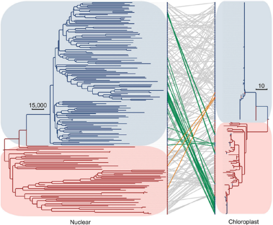 核基因組和細胞器基因組之間的不對稱多樣化揭示了基因滲入