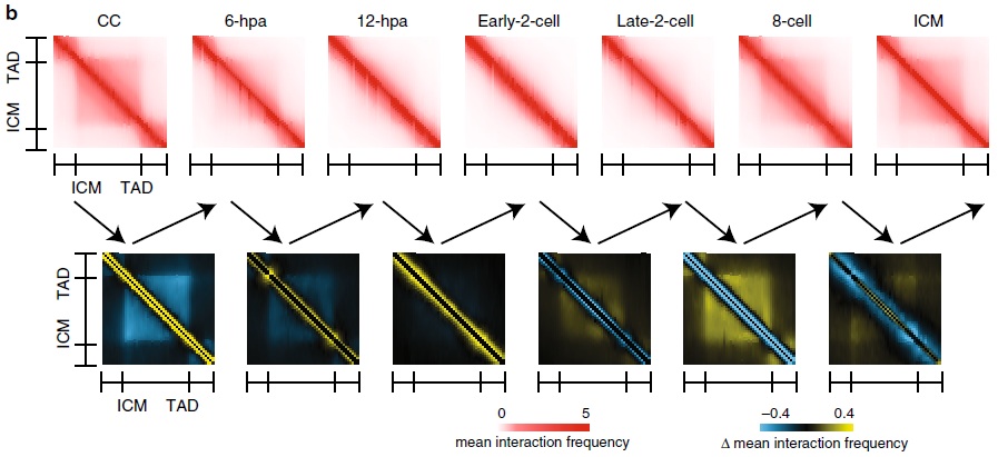 圖3b SCNT胚胎發(fā)育各個階段的TAD強弱變化