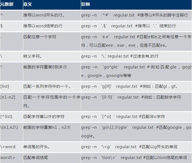 grep為過濾命令,一般情況下支持基本正則表達(dá)式,可以通過參數(shù)-E支持?jǐn)U展正則表達(dá)式,常用命令如下: