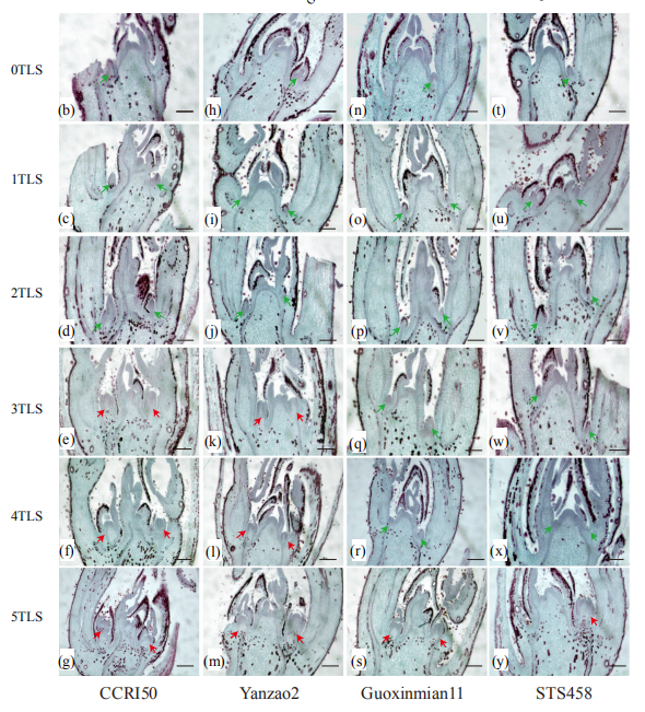 11個不同的組織:3日齡種子(種子)、2周齡整株苗(苗)、根、莖、2周齡苗的第一片全展葉(葉1),30日齡植株頂?shù)诙~(葉2)、旗葉(葉3)、第四葉(葉4)、未成熟的圓錐花序(圓錐花序1)、授粉期圓錐花序(圓錐花序2)、灌漿期圓錐花序(圓錐花序3);葉2有5個生物學(xué)重復(fù),其他有3個生物學(xué)重復(fù)。
