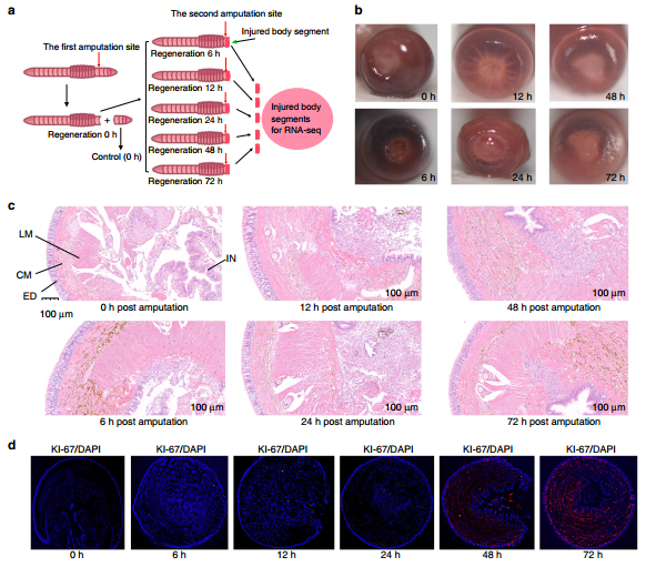 進(jìn)一步利用10xGenomics單細(xì)胞轉(zhuǎn)錄組測(cè)序深度解析蚯蚓再生機(jī)制,蚯蚓再生早期72小時(shí)后損傷愈合部位細(xì)胞的高比例組分是干細(xì)胞,且多能干細(xì)胞在蚯蚓再生早期過(guò)程中具有重要作用。此項(xiàng)研究提供了一些蚯蚓再生的候選分子細(xì)胞學(xué)機(jī)制。