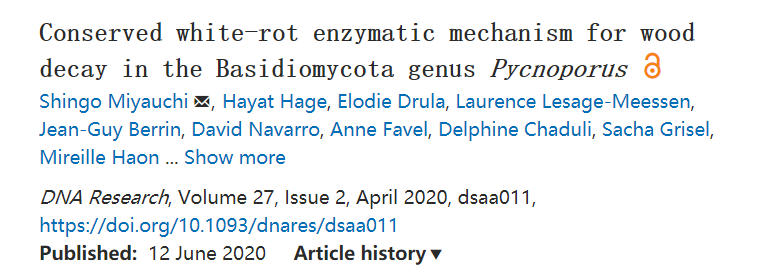 本文通過比較基因組,轉(zhuǎn)錄組和蛋白組等多組學(xué)方法對(duì)擔(dān)子菌門下的密孔菌屬的真菌進(jìn)行研究,發(fā)現(xiàn)它們?cè)谀静慕到夥磻?yīng)中存在著一些保守的酶學(xué)反應(yīng)特征,包括產(chǎn)過氧化氫酶和耗過氧化氫酶協(xié)同作用,纖維二糖脫氫酶和AA9溶解性多糖單氧酶協(xié)同作用。
