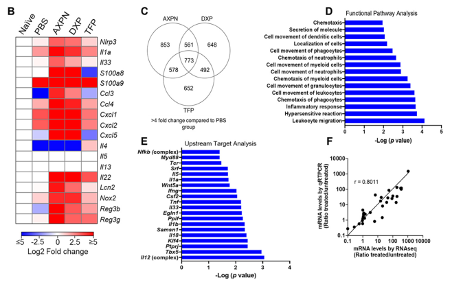 藥物介導(dǎo)的保護依賴于微生物群落的存在,其在喚起宿主防御以促進保護性免疫作用。本文通過構(gòu)建小鼠模型進行16S rRNA測序和轉(zhuǎn)錄組測序,發(fā)現(xiàn)藥物均增加了一些先天免疫應(yīng)答相關(guān)基因的表達??傊?,先導(dǎo)藥物通過激活I(lǐng)L-33和通過宿主防御機制去清除病原體,促進疾病減輕和小鼠模型的生存。
