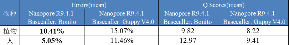 本次更新不僅是有了量的突破,同時也有了質的飛躍,Oxford Nanopore近期發(fā)布了一款名為Bonito CRF的新算法,基于大數據進行準確度訓練,可有效提高對單條讀長序列識別(在DNA單分子上確定堿基序列過程)的準確性。通過與最常用的basecalling軟件比對可以發(fā)現,Bonito可以有效提升序列識別的準確性,使得高準確性基因組組裝成為可能。